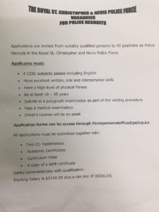 Facebook WhatsApp Email Copy Link The Royal St. Christopher and Nevis Police Force is seeking qualified applicants to serve as Officers in the Police Service. Attached flyer outlines the qualifications.