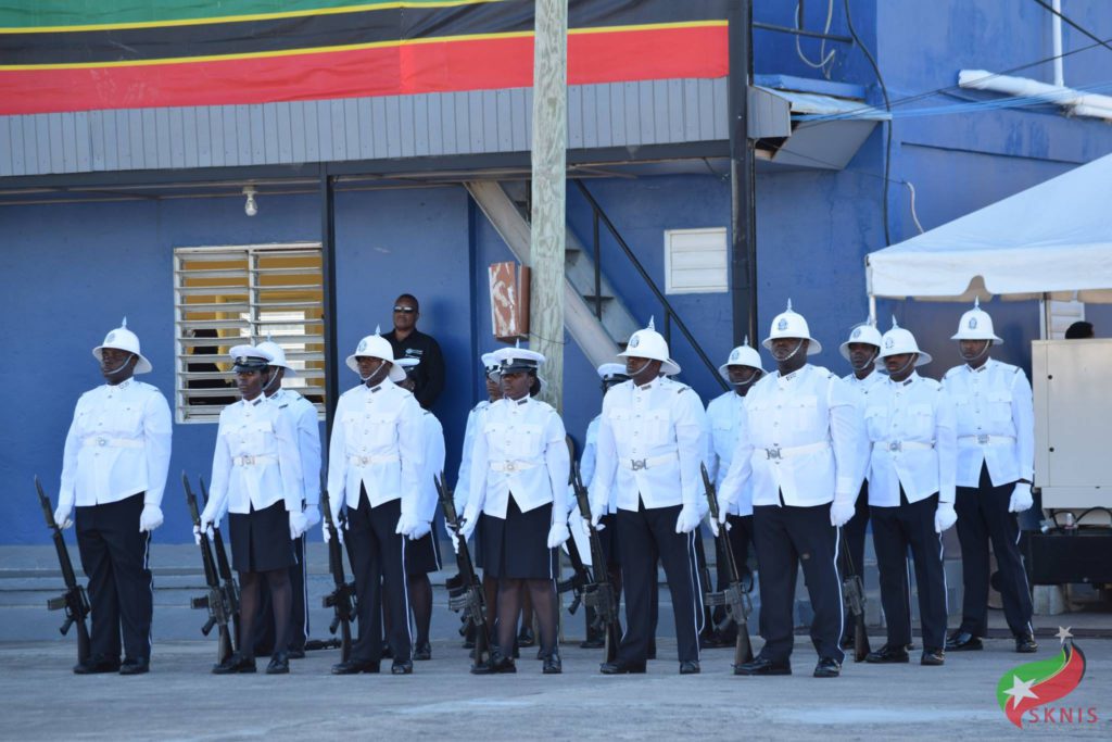 Basseterre, St. Kitts, December 13, 2017 (SKNIS): As the St. Kitts-Nevis Defense Force Band played Auld Lange Syne, they slow marched two-by-two and exited the parade square with friends, family and well-wishers looking on with pride. The occasion was the 40th graduation ceremony of the Police Recruit Training Course #41, which took place at the Police Training School in Basseterre on December 12, 2017.