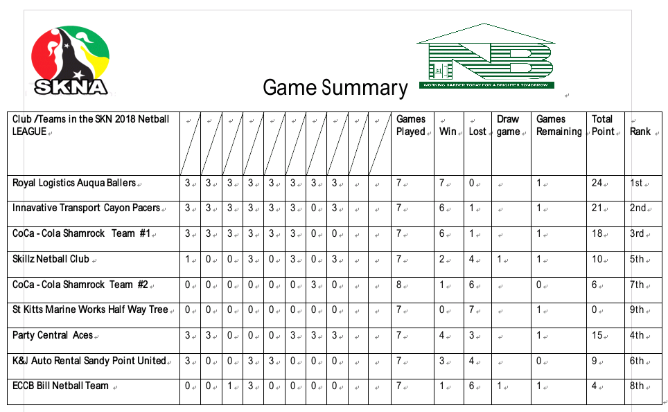 | Sat 4TH | 6:00pm | 2 | ECCB BILL$ | SKILLS | |