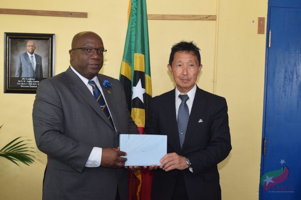 During their meeting, Ambassador Okada updated Prime Minister Harris on his country’s development cooperation agenda with St. Kitts and Nevis, which includes the donation of disaster reduction equipment such as tarpaulins, generator and fire extinguishing pumps to the National Emergency Management Agency (NEMA). With respect to technical assistance, His Excellency Okada noted that Japan can assist the Federation in areas of coastal fishing, energy saving and renewable energy development, as well as providing training opportunities for residents of St. Kitts and Nevis in the fields of climate change, disaster risk reduction and environmental management.