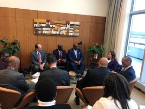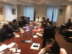 Dr. Harris met with United Nations President of the General Assembly, H.E. María Fernanda Espinosa Garcés; Nicaragua UN PR H.E. Mr. Jaime Hermida Castillo; Australia UN PR H.E. Ms. Gillian Bird; South Africa UN PR H.E. Mr. Jerry Matthews Matjila; Ambassador of Uruguay, H.E. Mr. Elbio Oscar Rosselli Frieri; Ambassador of Brazil H.E. Mauro Luiz Locker Vieira; and South African Ambassador, H.E. Mr. Jerry Matthews Matjila.
