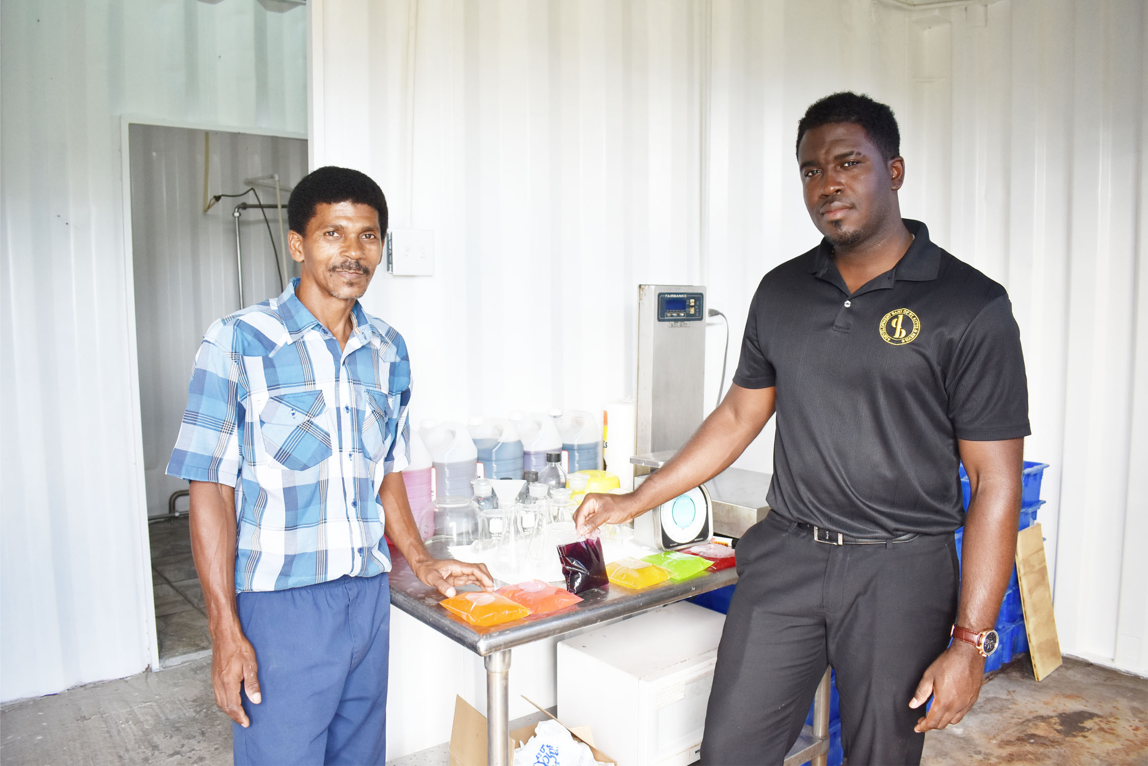 Paying the Seaton Manufacturing facility a visit recently was Development Bank of St. Kitts and Nevis’ Business Support Officer Mr Manasses Huggins who expressed satisfaction that the bank’s Fresh Start Programme has played a crucial part in ensuring that the bag drinks industry in the Federation did not just fade away.