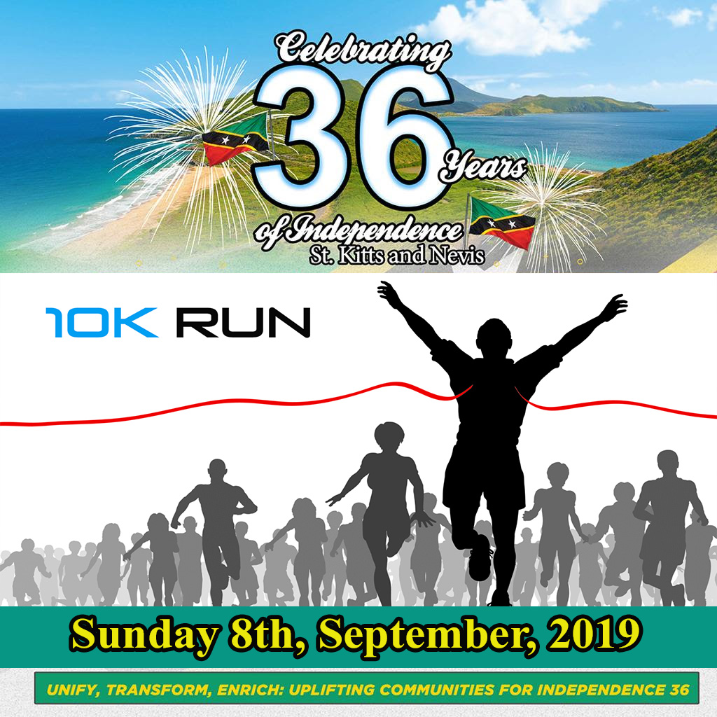 Basseterre, St. Kitts, August 21st, 2019: The Department of Sport will host its 36th Independence Anniversary 10 miles road relay as a part of the National Independence celebratory activities on Sunday 8th September 2019. The road relay will begin from Tabernacle via Cayon and finish at the Independence Square. The two categories of participation are primary schools and high school /clubs. Each primary school team will consist of three (3) males and three (3) females who will run one (1) mile each, which will cover a total distance of six (6) miles. This race for this category will commence at Cabbage Tree Cayon. The high schools/clubs will have five (5) males and five (5) females who will run one mile each to cover a total distance of 10 miles. This race will begin in Tabernacle. The races will start at 4:00 p.m. Each participant will receive a T-shirt.