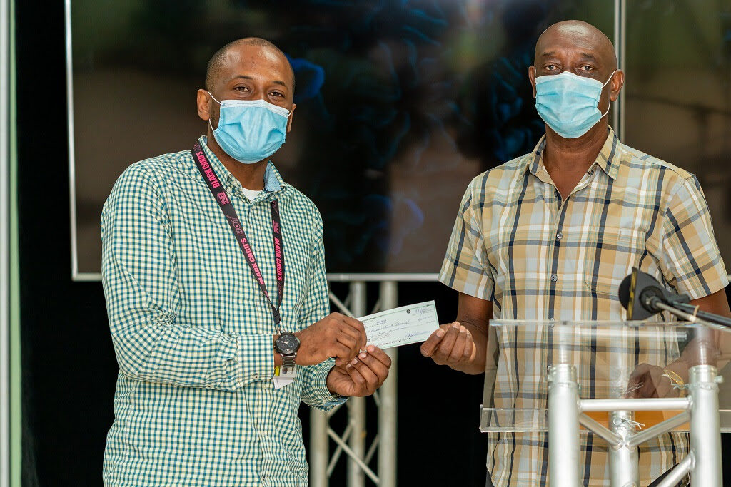 Furthermore, Mr. Browne presented a cheque of $1,000 to NEMA’s National Disaster Coordinator and Chairman of the COVID-19 National Task Force, Mr. Abdias Samuel, to assist in the fight against the Novel Coronavirus.