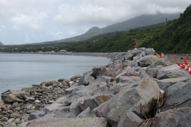 The new road was extended on the reclaimed land approximately 24 feet apart from the existing road. It was also elevated some 15 feet above the current road and have guard rails on both sides. The seaside protection includes strong rock armouring featuring large 10 and 20-tonne boulders. The rock design is similar to the protection with large boulders at Port Zante – the main port for cruise ships in St. Kitts.