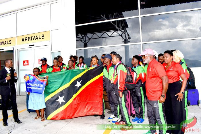 BASSETERRE, St. Kitts, June 29, 2023 (SKNIS) – The athletes who represented St. Kitts and Nevis in the Special Olympics World Games in Berlin, Germany from 17th – 25th June, 2023, returned to the Federation to a warm welcome reception at the Robert L. Bradshaw International Airport on Wednesday (June 28) afternoon.