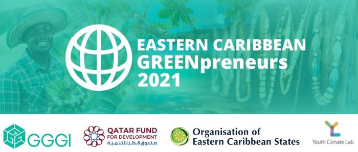 The Eastern Caribbean Greenpreneurs Incubator Program was launched in 2021 and is a collaborative initiative of The Global Green Growth Institute and the Organisation of Eastern Caribbean States and funded by the Qatar Fund for Development (QFFD). The program is a free, carefully curated training and mentoring program designed to support green entrepreneurs in building robust and sustainable business models and give them the skills, tools, and confidence to set them up for success. It features a 12-week virtual green business training based on the lean start-up methodology, a mentorship program, 1-on-1 coaching, and networking opportunities culminating in a Business Plan Competition where up to 10 businesses can qualify for grants of US $10,000.