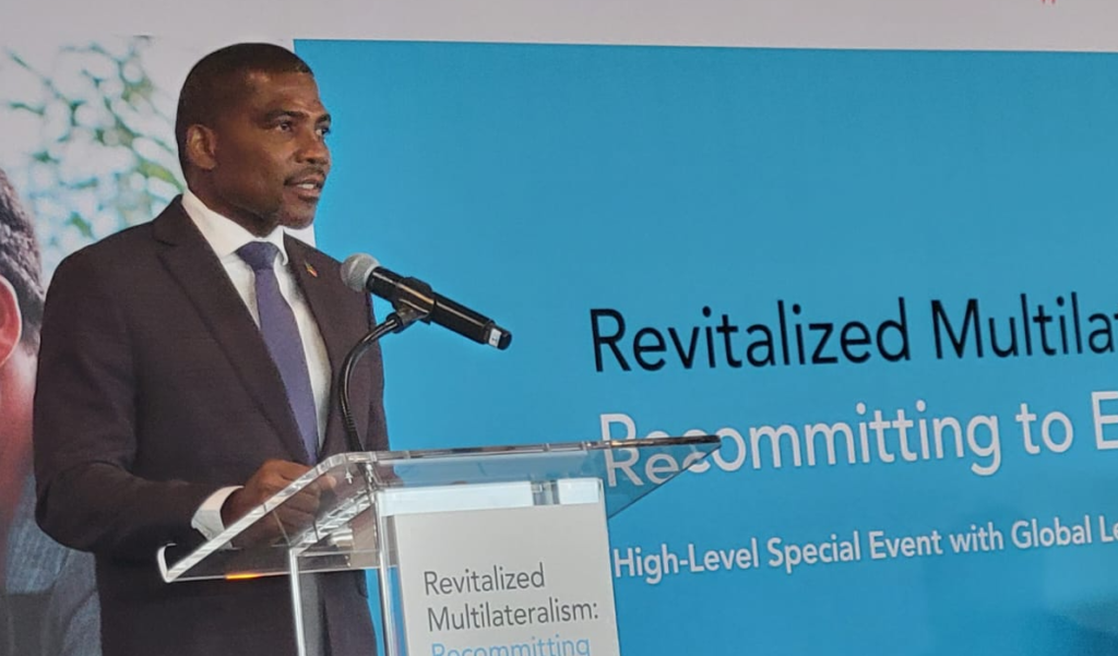 Manhattan, New York, September 24, 2024 (SKNIS): The Prime Minister of St. Kitts and Nevis, the Honourable Dr. Terrance Drew, delivered a powerful call for revitalised multilateral cooperation to combat the HIV/AIDS epidemic during a high-level side event at the 79th United Nations General Assembly. The event, hosted by UNAIDS, focused on the theme “Revitalised Multilateralism: Recommitting to Ending AIDS Together.”