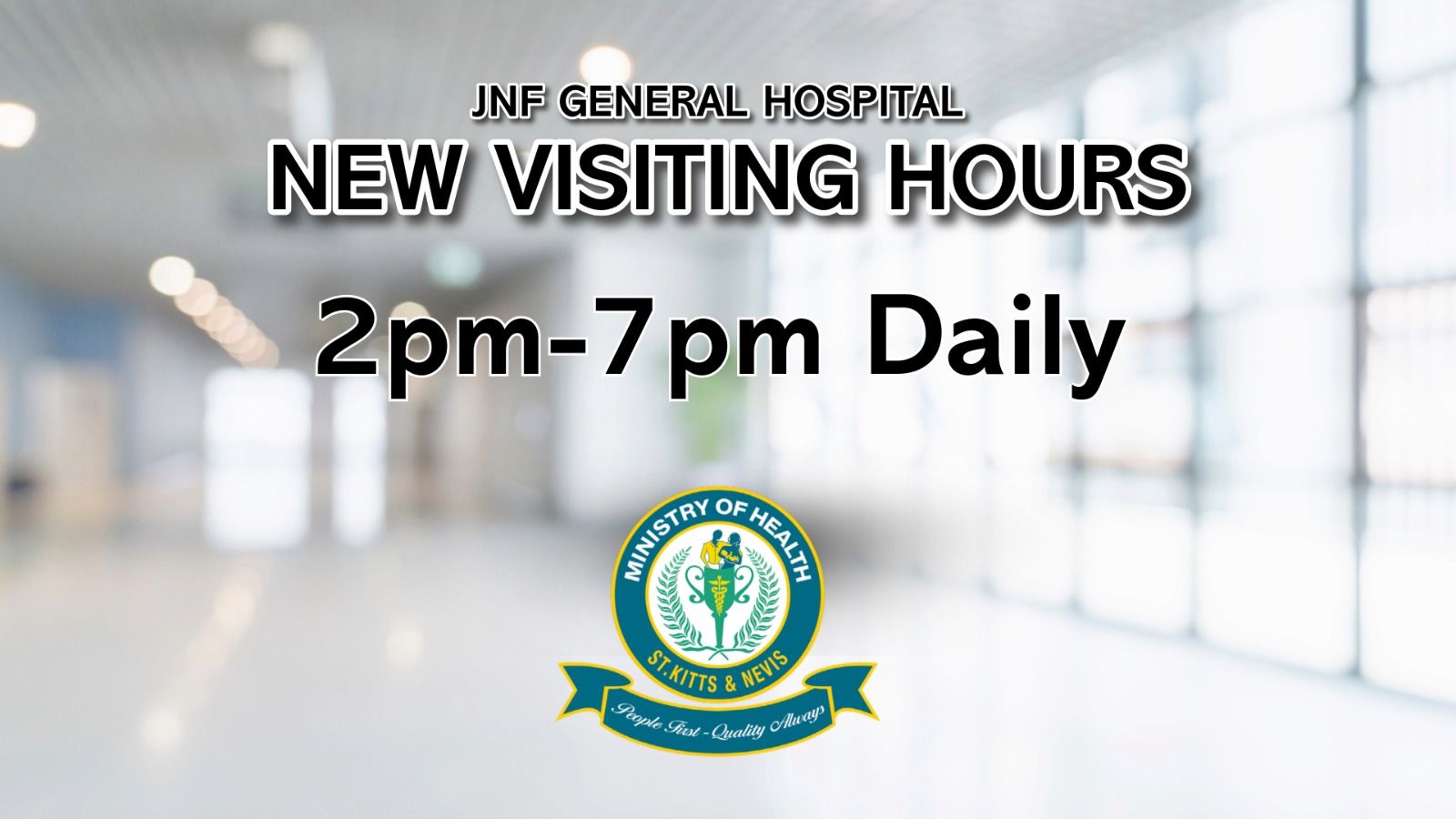 Basseterre, St. Kitts (November 27, 2024) – The Ministry of Health has announced that effective December 1, 2024, visiting hours at the Joseph N. France General Hospital, Pogson Medical Centre, and Mary Charles Hospital will be extended. The new hours will run from 2 p.m. to 7 p.m. daily, a change designed to align the nation’s healthcare services with international best practices and enhance patient care during the ongoing hospital accreditation process.