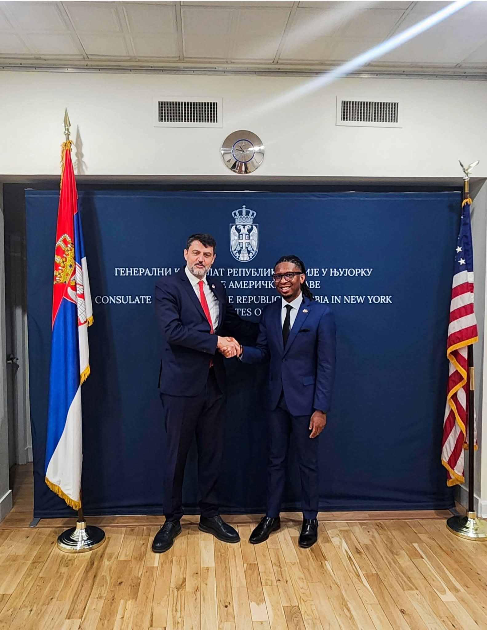 New York, (26th April, 2026) — On the 21st April, 2026, His Excellency, the Consul General of the Republic of Serbia, Mr. Vladimir Božović, welcomed the Deputy Consul General of Saint Kitts and Nevis, Mr. Kressell Daniel, at the Consulate General of the Republic of Serbia in New York.